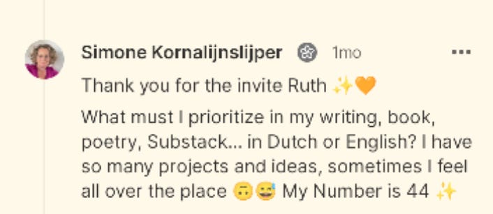 Number 44 also implies do not overcommit. Itās an influence of strong beginnings that can become overwhelming if unmanaged. In practical terms: donāt try to launch all projects at once. Choose the project that organises the others. For many writers, this means choosing the format that provides the most stable rhythm. Substackās cadence, weekly, biweekly, even monthly can serve as an anchor that supports the development of a book or poetry collection without competing with them so it is wise to continue to pursue this platform as you currently are doing.